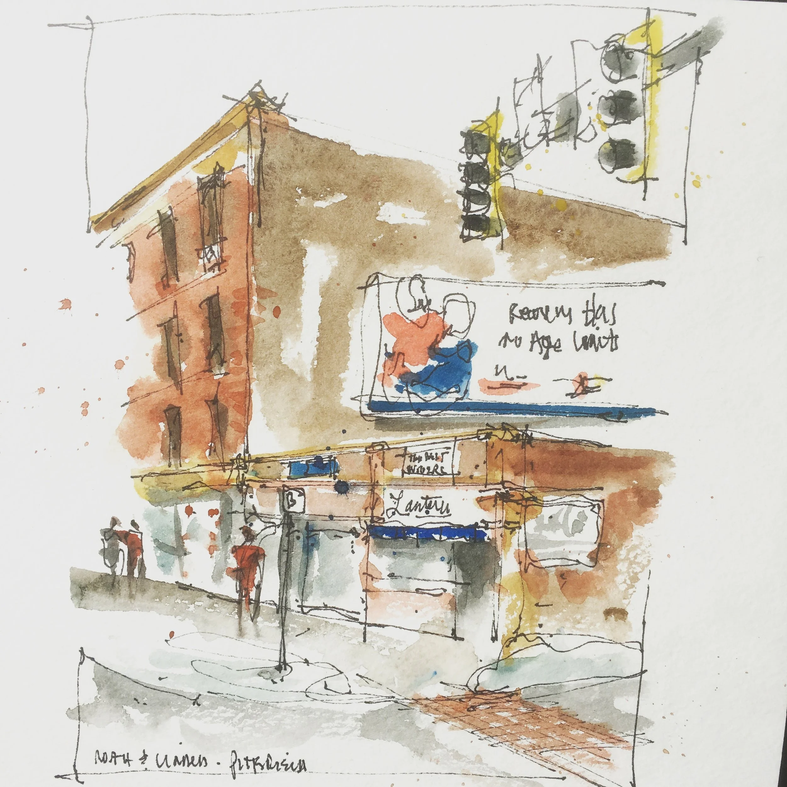 As a primer for developing my artwork, Urban Sketching provides both technical grounding and conceptual richness. It allows me to explore composition, perspective, and light in real-time, while also building a vocabulary of visual motifs drawn from everyday life - rooftops, signage, people in motion, shifting weather, textures, and patterns. These quick, gestural drawings often serve as raw material or inspiration for more finished works, but they also stand on their own as intimate records of place. Over time, urban sketching cultivates a way of seeing that is attentive, educational, and responsive, an essential foundation for my work with varied subjects and stories.